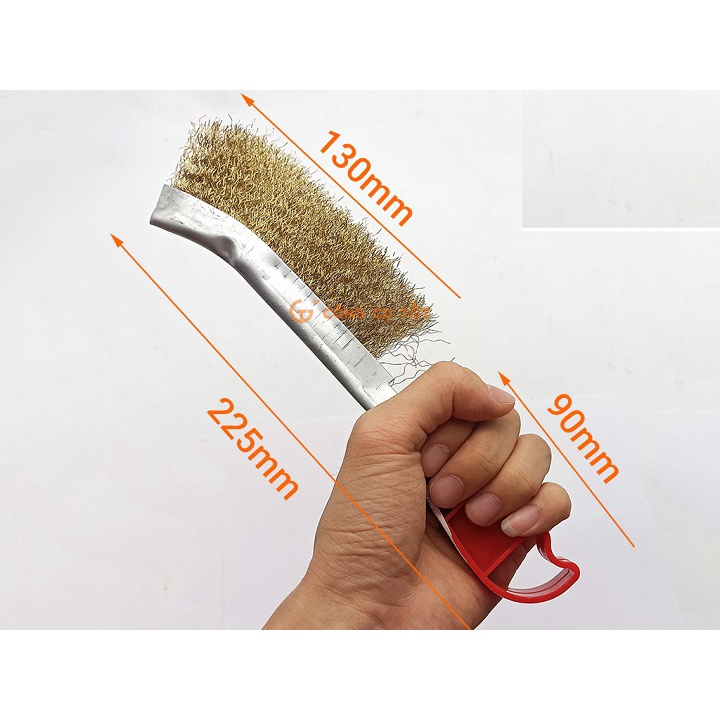 Bàn chải tay cước thép mạ đồng được thiết kế cán bằng nhựa rất dễ thao tác, sợi cước thép chất lượng và mật độ sợi cước cao làm tăng hiệu quả làm sạch và tuổi thọ của bàn chải.chiều dài cả cán 22.5cm