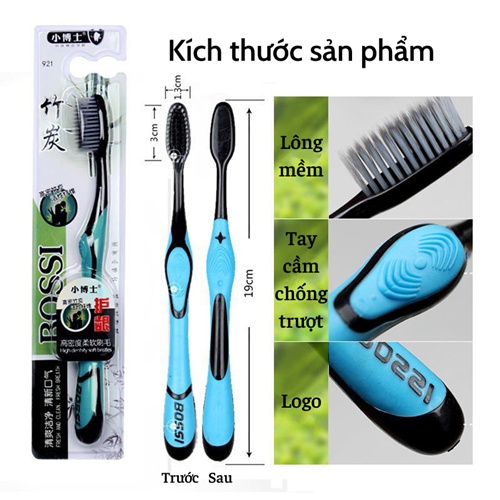 Bàn chải than tre SALE Bàn chải đánh răng than hoạt tính Bossi Hàn Quốc cao cấp lông mềm mịn ngừa sâu răng hiệu quả