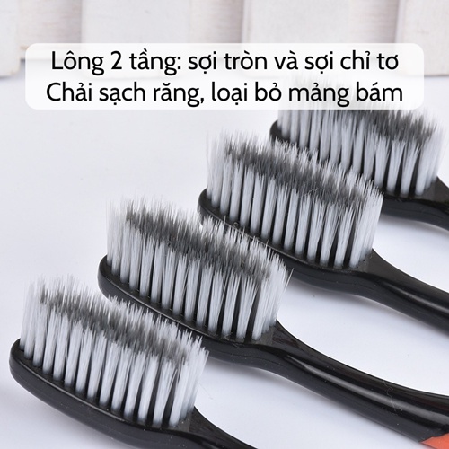 – Cấu trúc lông bàn chải 2 tầng (sợi tròn và sợi chỉ tơ) giúp chải răng sạch hơn, Massage nướu, nhẹ nhàng loại bỏ mảng bám cứng đầu