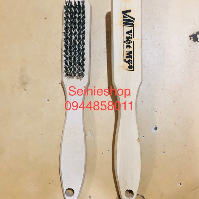 Đặc điểm Sợi thép được ghim vào cán gỗ thành 7 hàng. Dùng để lấy đi bụi bẩn, gỉ sắt, vảy sơn trước khi sơn. Xuất xứ Việt Nam Thương hiệu: Việt Mỹ