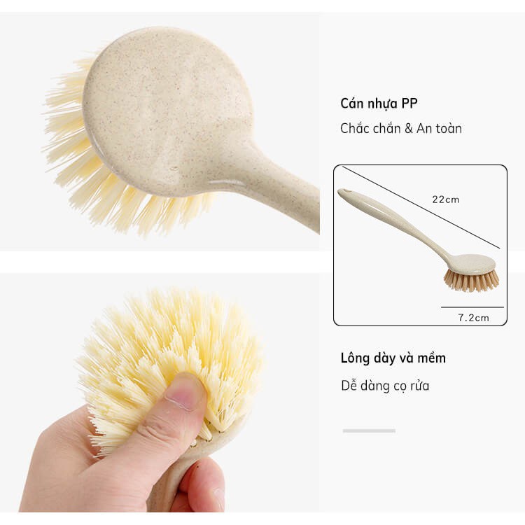 Giới thiệu Bàn chải vệ sinh nhà bếp, nhà tắm, đa năng nhựa lúa mạch có tay cầm