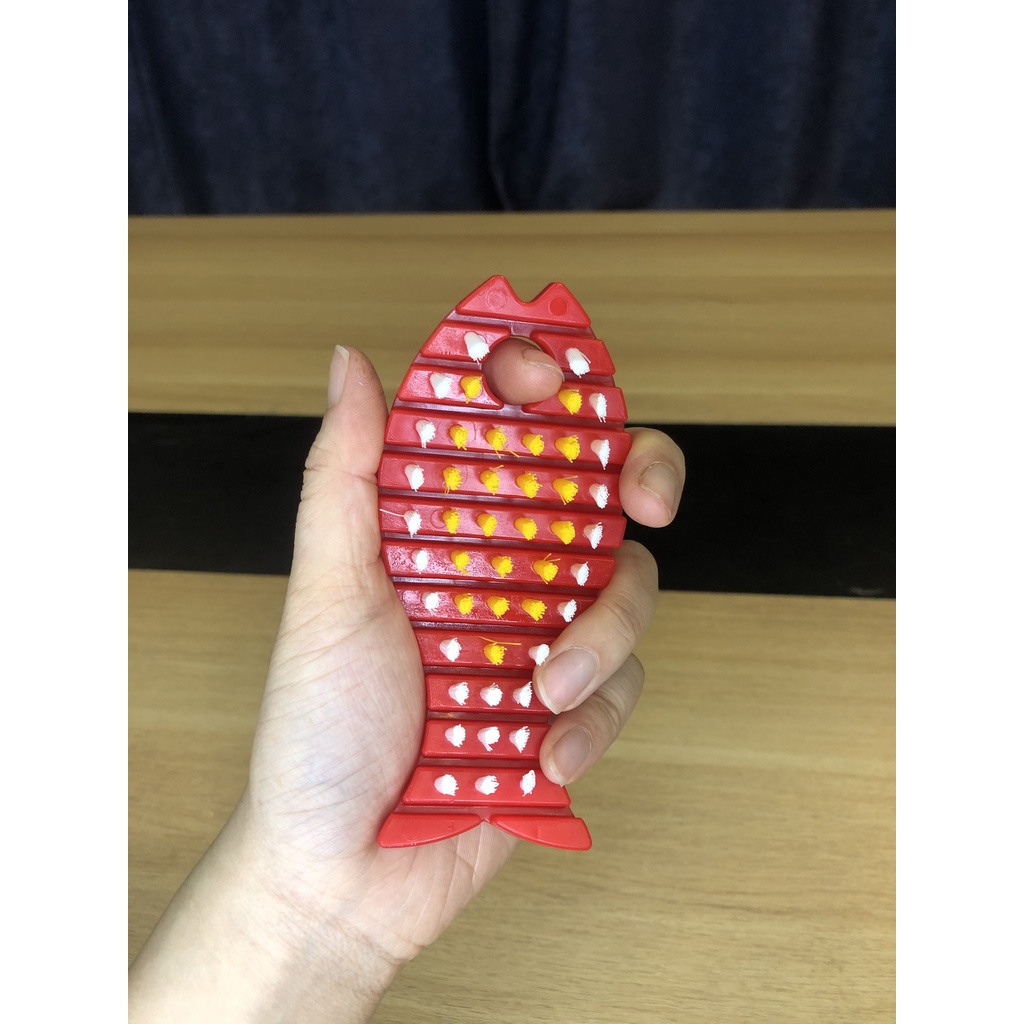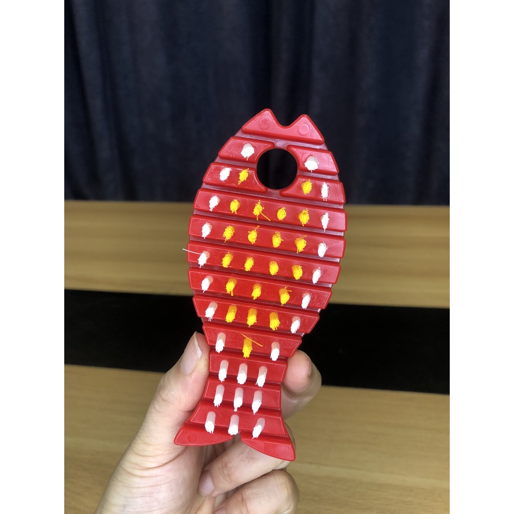 - Thiết kế bàn chải dạng con cá, rất tiện và vừa với tay cầm.