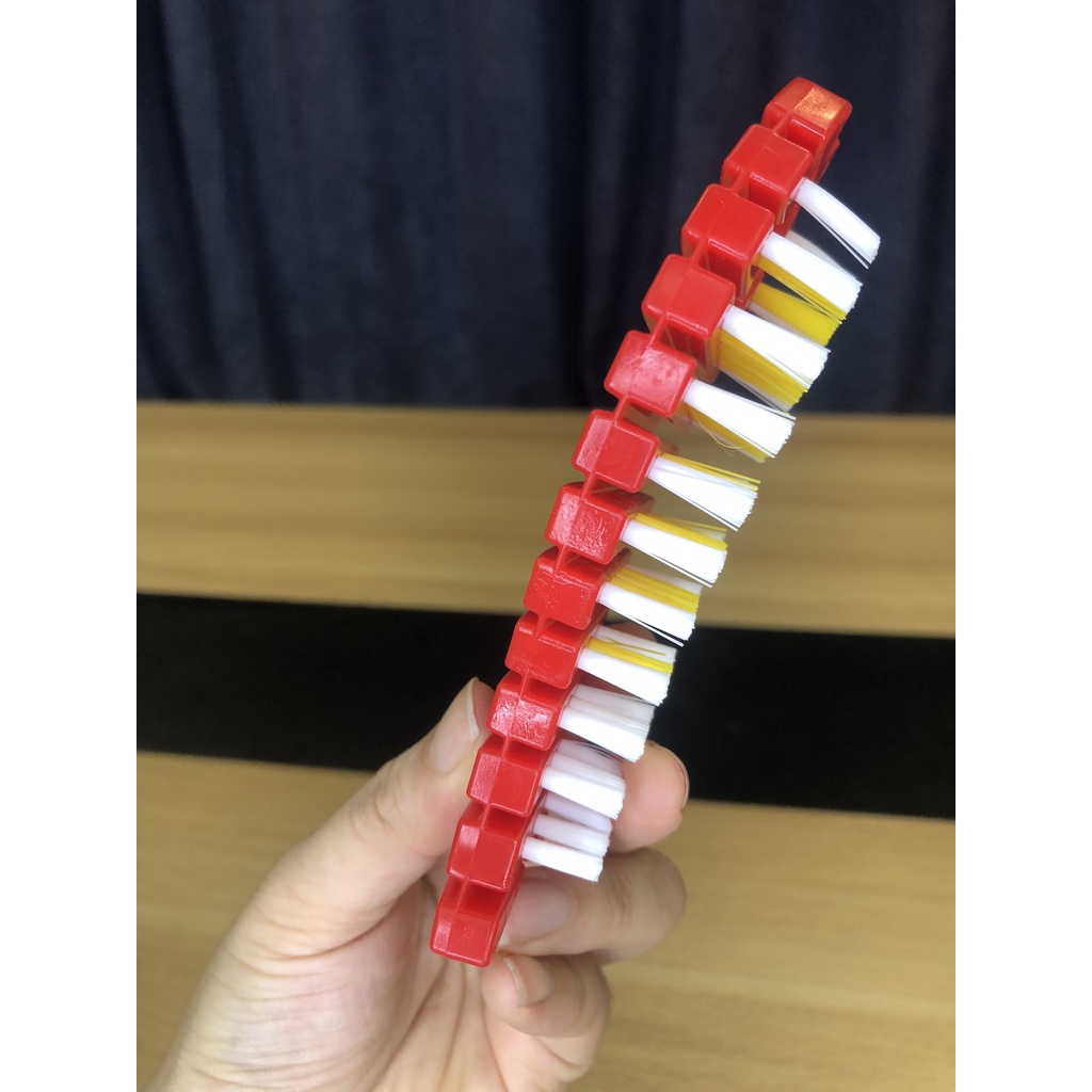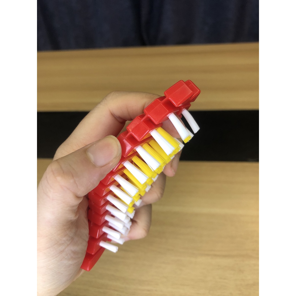 - Cấu trúc bàn chải có thể uốn cong tiên lợi làm sạch bất cứ các loại bề mặt như củ, quả, thớt, rổ rá,…