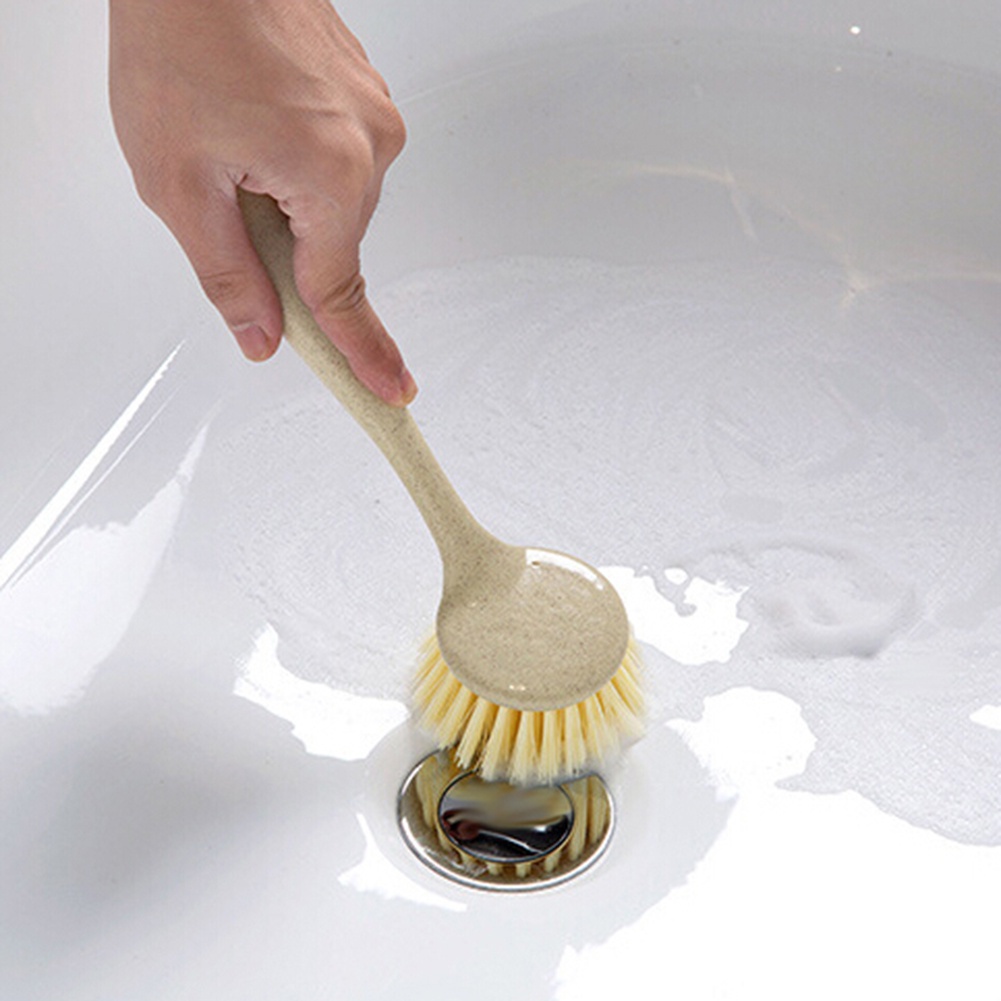 Bàn chải vệ sinh nhà bếp có tay cầm - cán nhựa lúa mạchDùng để cọ rửa nồi niêu xoong chảo,...