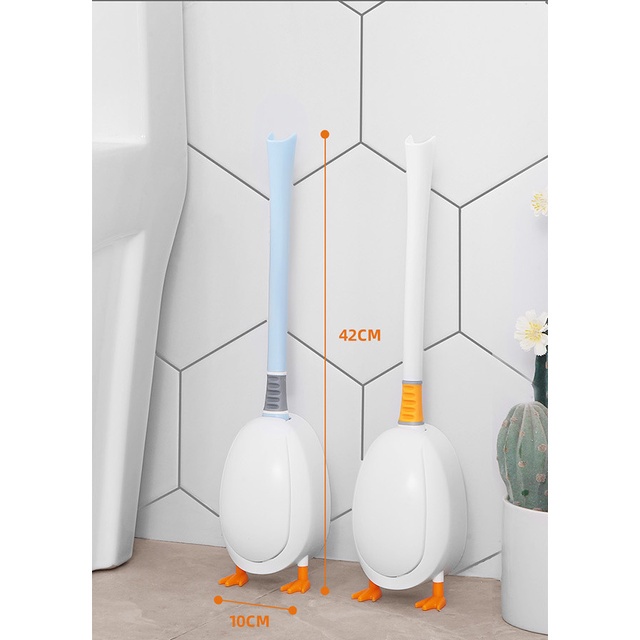 Bàn chải vệ sinh toilet, cọ bồn cầu bằng silicone hình chú vịt kèm hộp đựng tiện dụng