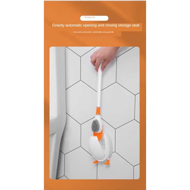 Giới thiệu Bàn chải vệ sinh toilet, cọ bồn cầu bằng silicone hình chú vịt kèm hộp đựng tiện dụng