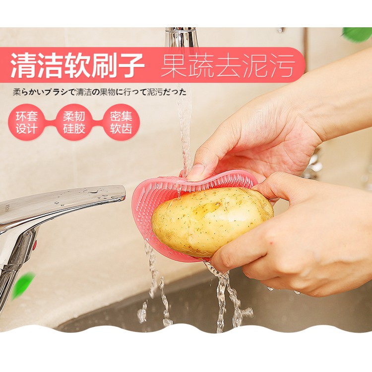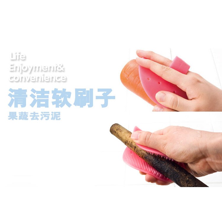 Bàn chải xỏ ngón chà vỏ củ quảBàn chải dẻo xỏ ngón tay dùng chà vỏ khoai, rửa rau củ...