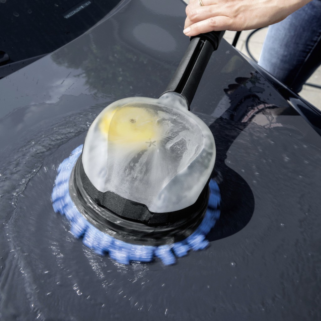 - Bàn chải xoay máy phun rửa áp lực với vải microfibre lý tưởng để làm sạch nhẹ nhàng ô tô và xe máy, vệ sinh thùng chứa,... Có thể dùng chất tẩy rửa, hóa chất thông qua máy phun rửa áp lực nếu cần. Bàn chải xe là thiết bị làm sạch gia dụng hiệu quả mà mỗi gia đình không thể thiếu.