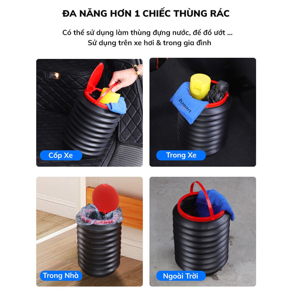Dùng đựng đồ cốp sau ô tô, làm thùng rác, đi picnic, làm xô xách nước...có nhiều tính năng rất tiện dụng, không còn lo chất bẩn tràn ra xe.