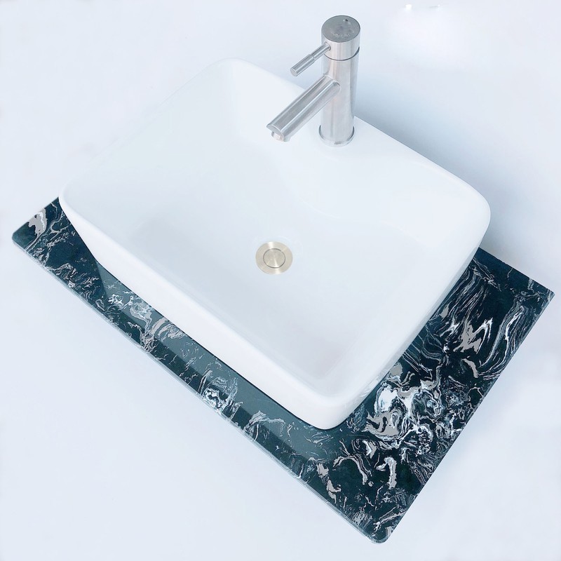 Có thể kết hợp với các loại chậu rửa mặt vuông, tròn đặt lên trên bàn đá