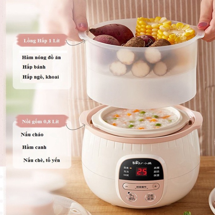 Thiết Bị Điện Gia Dụng > Đồ gia dụng nhà bếp > Nồi nấu chậm & Dụng cụ nấu chân không || (BẢN ĐẶC BIỆT) Nồi nấu cháo Bear 0.8l có lồng hấp kèm quà tặngCòn hàng