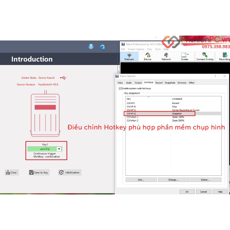Cắm tự nhận driver, bạn cài thêm phần mềm để thay đổi phím điều khiển. Bạn gán phím chuột trái, chuột phải, Enter, phím tắt, tổ hợp phím như Ctrl C, Ctrl F11, Ctrl F12...