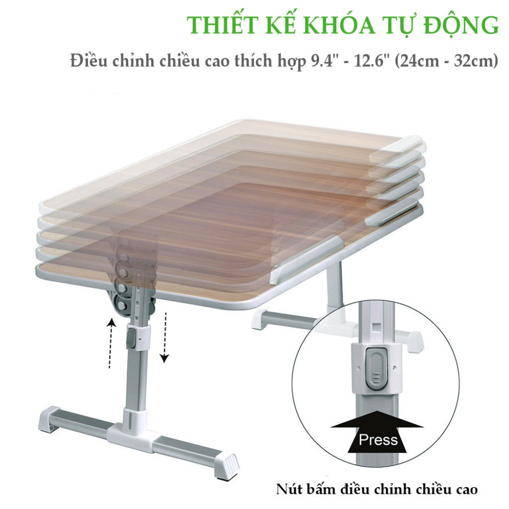 Bàn laptop đa năng TB101L -Một giải pháp sáng tạo bất cứ khi nào bạn cần một vị trí đặt đểmáy tính xách tay đa chức năng, một bàn làm việc văn phòng, một khay để đồcho ăn vặt, hoặc một cuốn sách thông minh đứng có thể chứa bất kỳ và đặt mọi vị trí ngồi hoặc nằmKích thước mặt bàn lớn và dễ sử dụng: Kích thước của bàn là 600x320x9mm (23,62 "x12,99" x0,35 "), phù hợp với laptop 17" hoặc lớn hơn với không gian cho con chuột. Hai nút tự động khóa ở mỗi bên dễ dàng thay đổi chiều cao (điều chỉnh từ 9,4 "- 12,6") và hai kẹp có thể được sử dụng để điều chỉnh góc bề mặt (từ 0-30 °)
