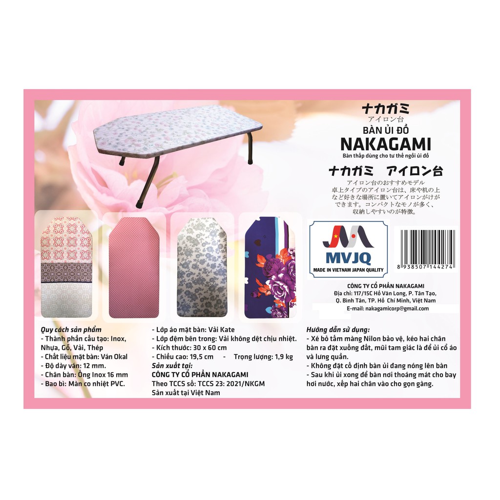 Bàn ủi đồ Nakagami chính hãng Chất lượng công nghệ Nhật Bản.Thành phần cấu tạo: Inox, nhựa, gỗ, vải chịu nhiệt, thép