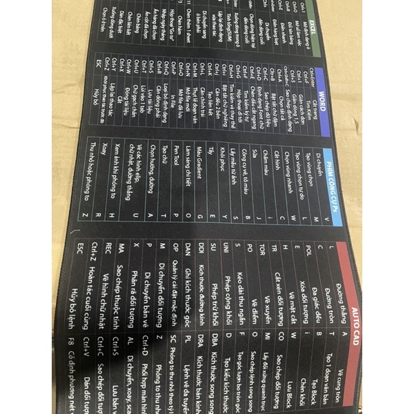 Bàn di chuột cỡ lớn, lót chuột( pad chuột) khổ lớn in hình công thức phím tắt Word, Excel, PS, Power Point..