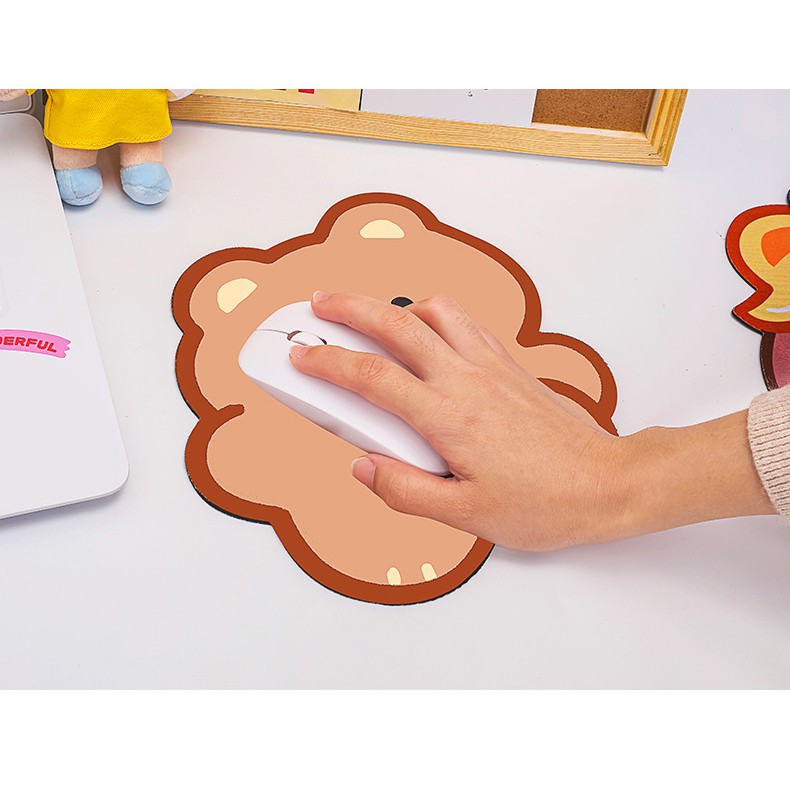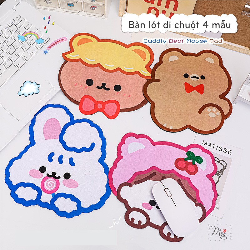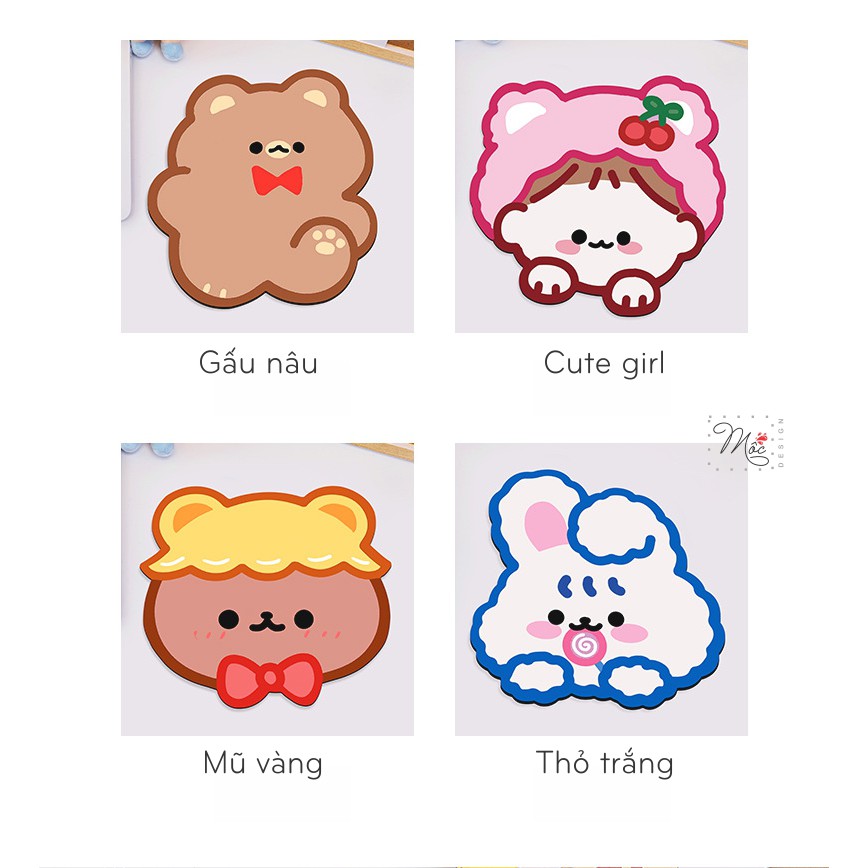 Bàn di chuột hoạt hình 4 mẫuMũ vàng - Gấu nâu - Thỏ trắng - Cute girl