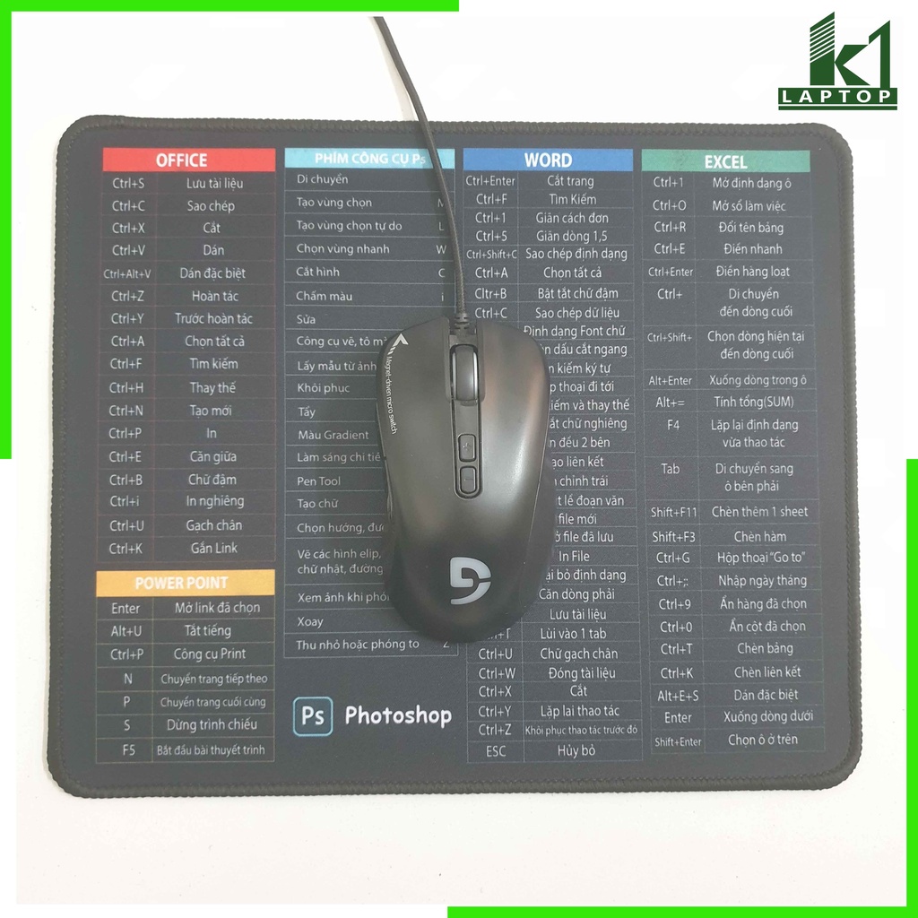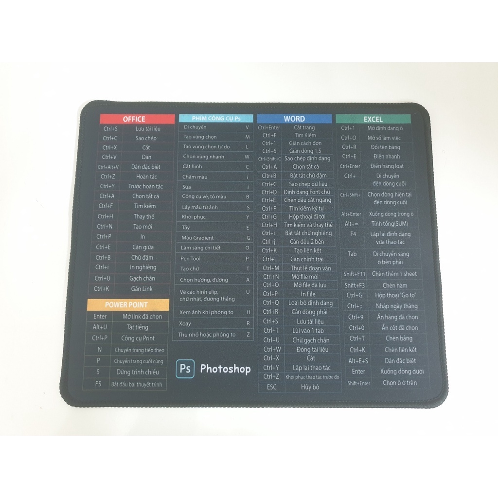 Bàn di chuột, lót chuột in công thức phần mềm văn phòng tiện lợi 30x25 cmTHẢM TRẢI BÀN LÀM VIỆC PHÍM TẮT CAO CẤP