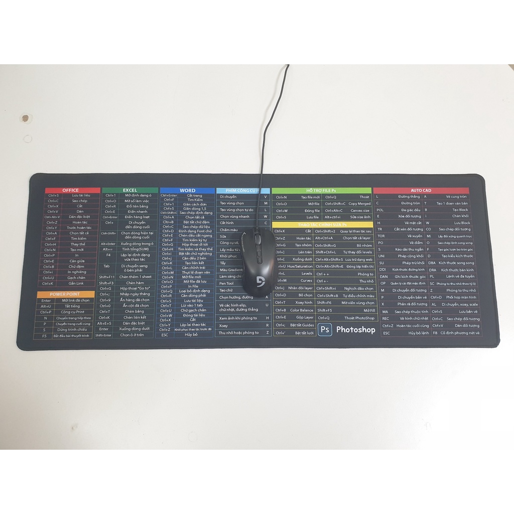 Bàn di chuột, lót chuột in công thức phần mềm văn phòng tiện lợi 80x30 cmTHẢM TRẢI BÀN LÀM VIỆC PHÍM TẮT CAO CẤP