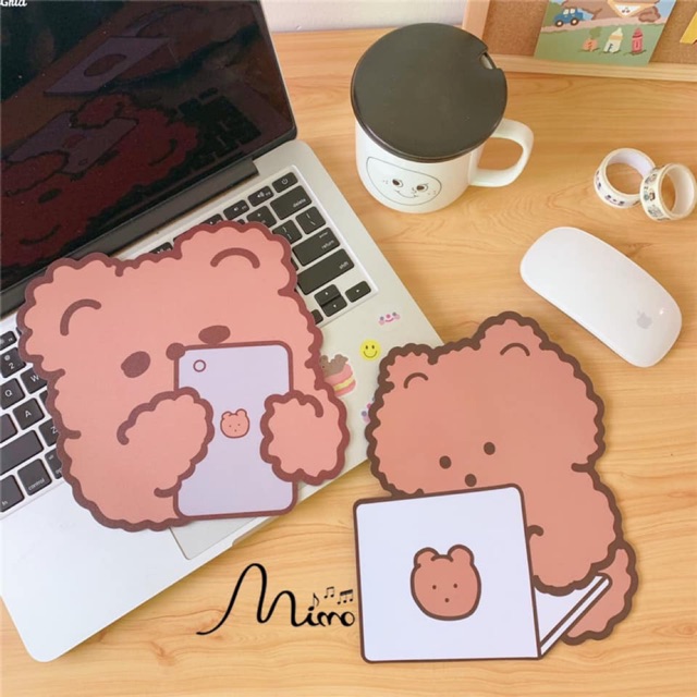 Bàn di chuột tấm lót chuột họa tiết gấu nâu đáng yêu sạch sẽ
