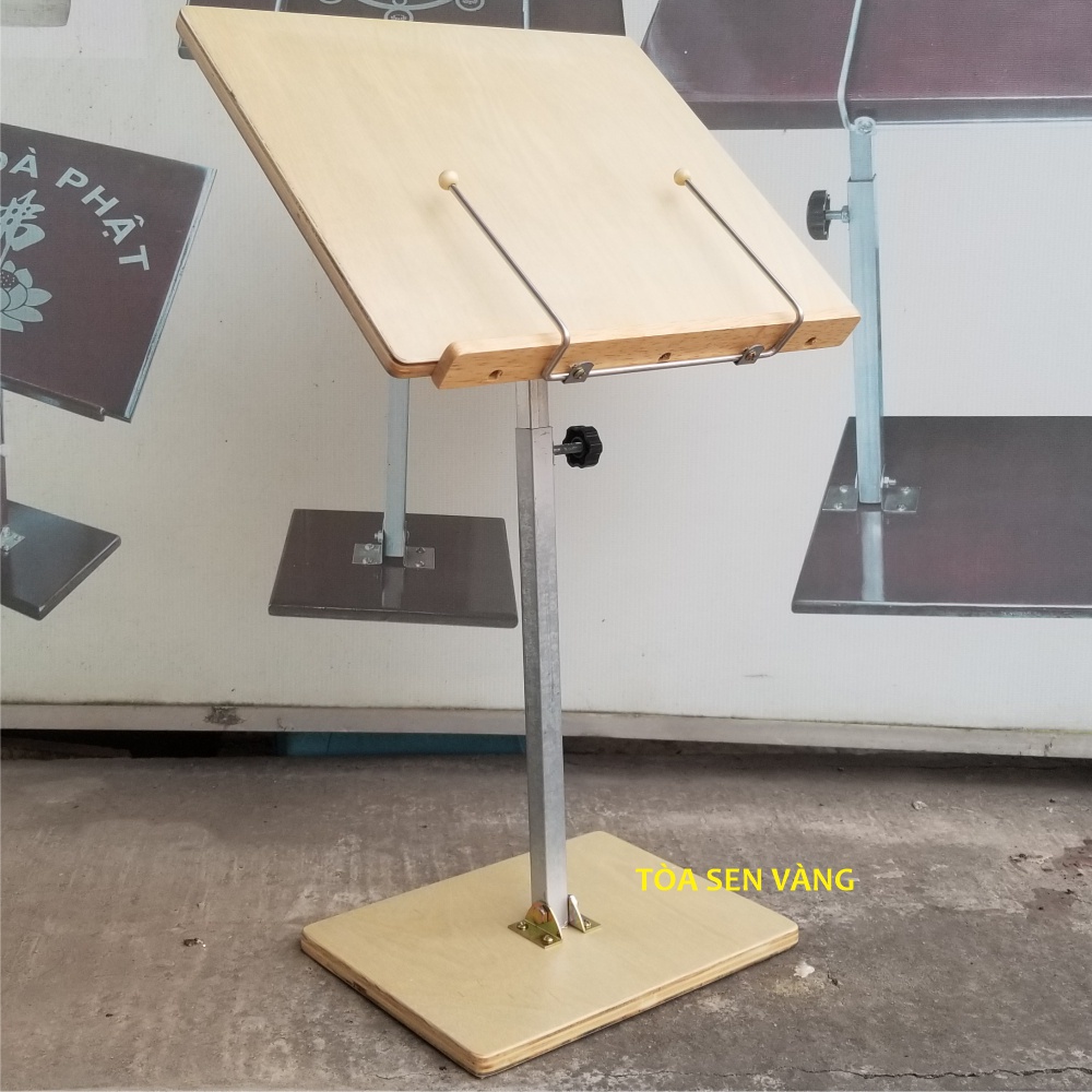 Bàn Đọc Kinh Sách - Có thể điều chỉnh độ cao, mặt bàn trơn không in và có cây kim loại giữ trang sách