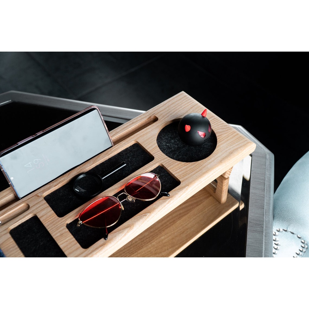 - Tích hợp nhiều công năng sử dụng: Đế dựng điện thoại, khay đựng bút, card, khay đưng tách cafe ...