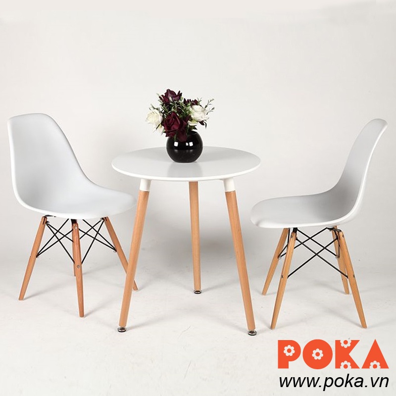 Bàn gỗ Eames tròn 60cm có kiểu sang trọng với chất liệu tấm MDF cao cấp được sản xuất trên dây chuyền công nghệ cao có khả năng chống thấm nước và dễ dàng lau chùi, làm sạch. Bàn có màu trắng trang nhã hay màu đen sang trọng góp phần tạo không gian thông thoáng và làm nổi bật các món ăn đồ uống được bày biện bên trên tạo cảm giác sạch sẽ, ngon miệng cho thực khách.
