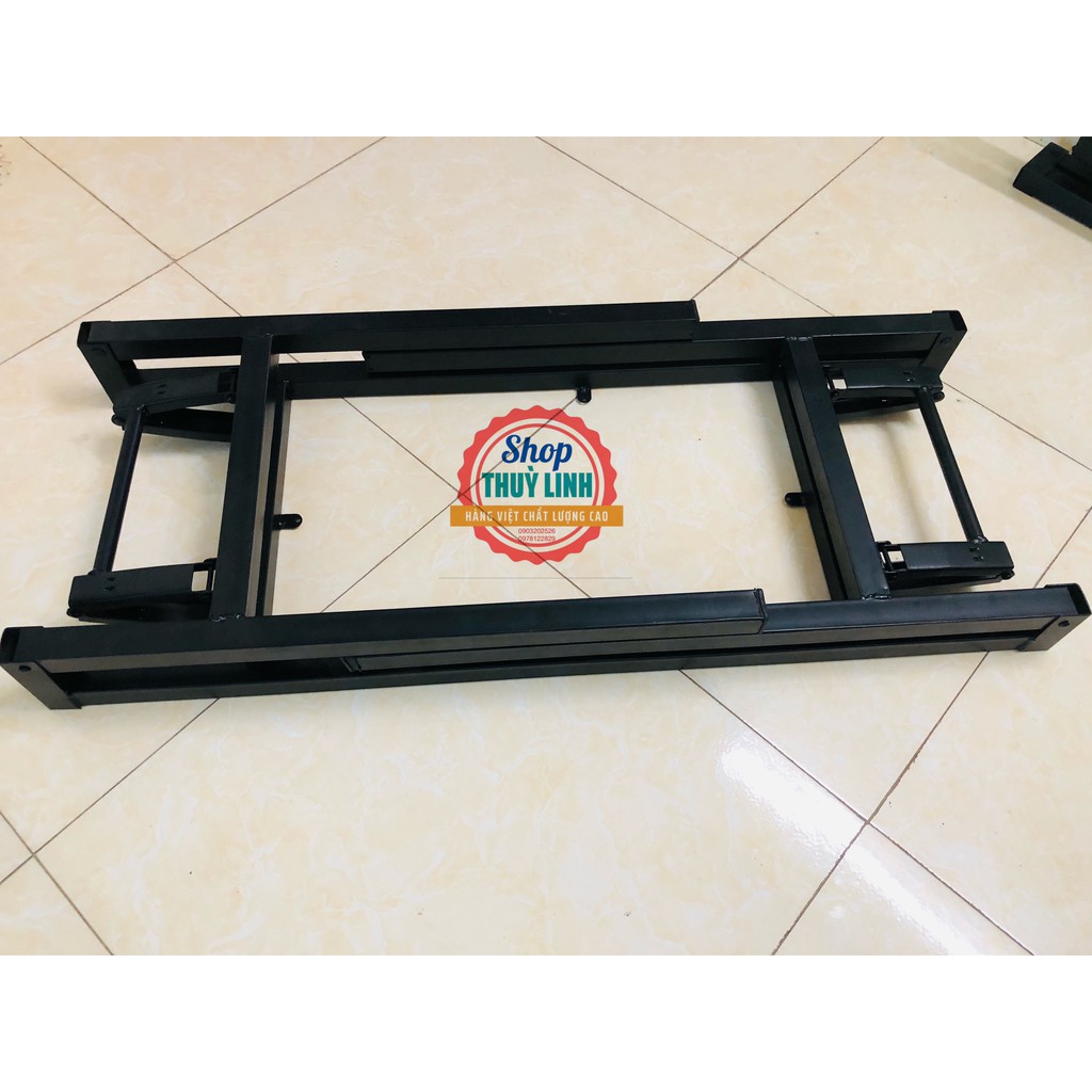 chân bàn sơn tĩnh đen tĩnh điện, gấp kiểu lò xo nhẹ nhàng mở ra và gấp lại