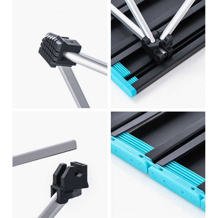 - Mặt bàn nhôm sơn tĩnh điện, khung nhôm nhẹ và chắc chắn, chân đế nhựa ABS chống trơn trượt