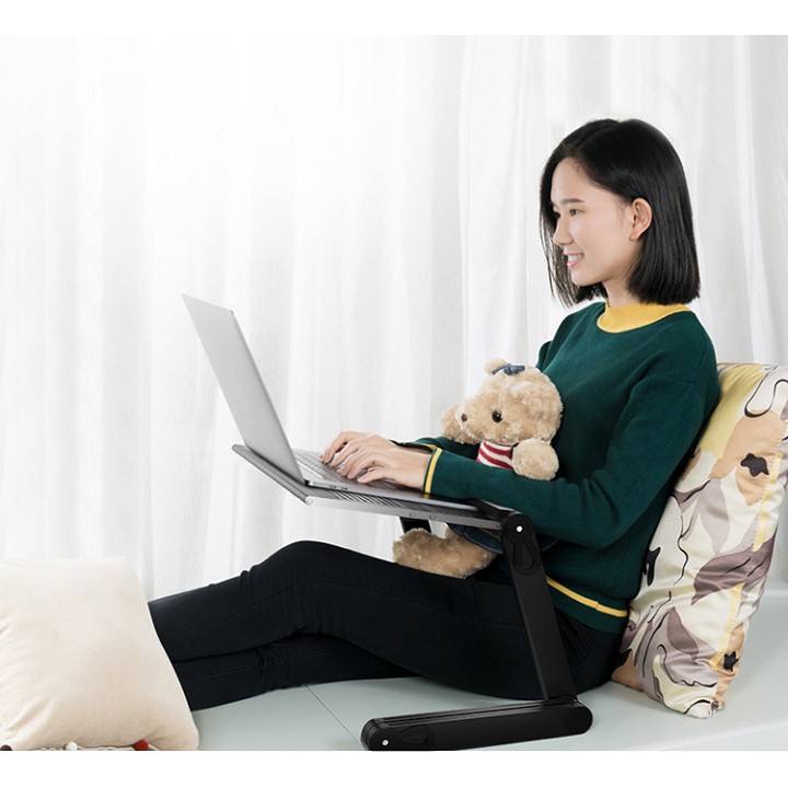Bàn gấp để laptop tùy chỉnh 360 độ T6 với khả năng điều chỉnh chiều cao theo ý thích nên bạn có thể sử dụng chiếc bàn để đặt laptop ở mọi lúc mọi nơi: khi đang ngồi bệt trên sàn, khi ngồi tại ghế hay cả khi nằm thoải mái trên giường… mà không phải lo bị mỏi vai, mỏi mắt…