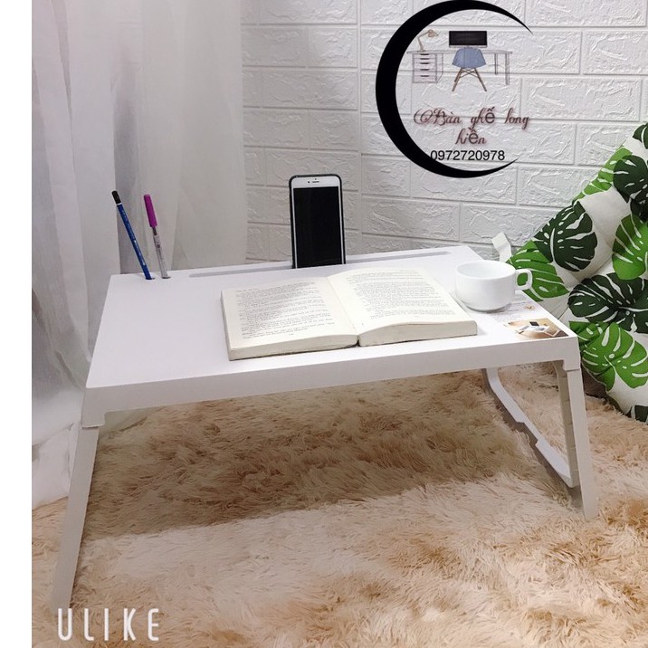 Bàn gấp gọn nhựa cao cấp có khe cắm bút để điện thoại ipad