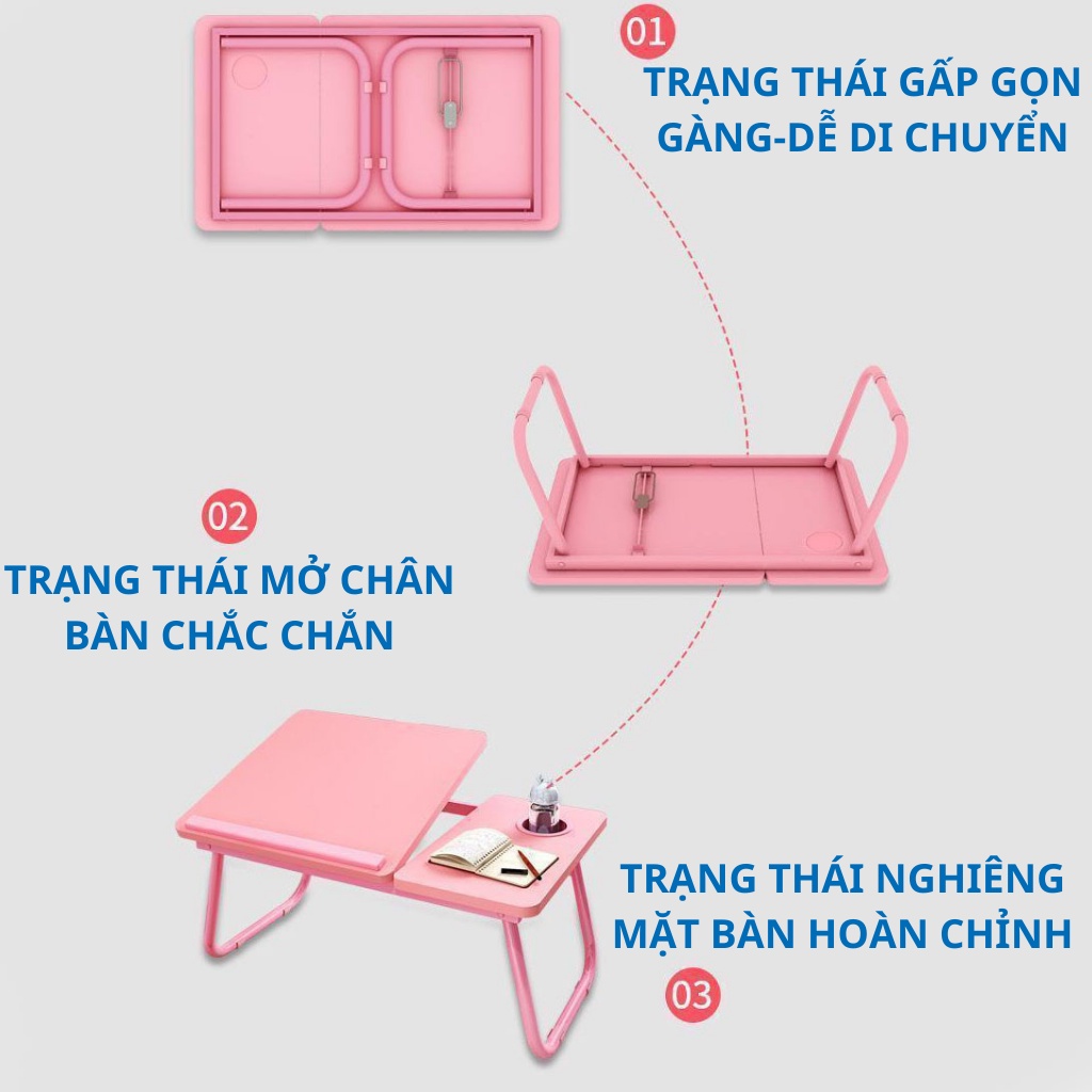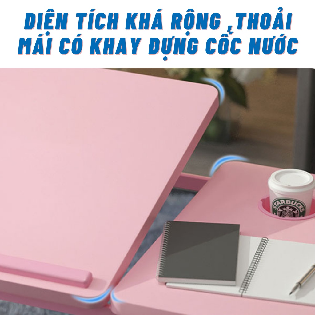 Bàn gấp gọn thông minh, có thể nâng hạ mặt bàn để học tập, đọc sách và dùng Laptop trên giường Yoii StoreBàn gấp gọn để laptop đa năng có thể tùy chỉnh góc độ có khay để cốc nước.