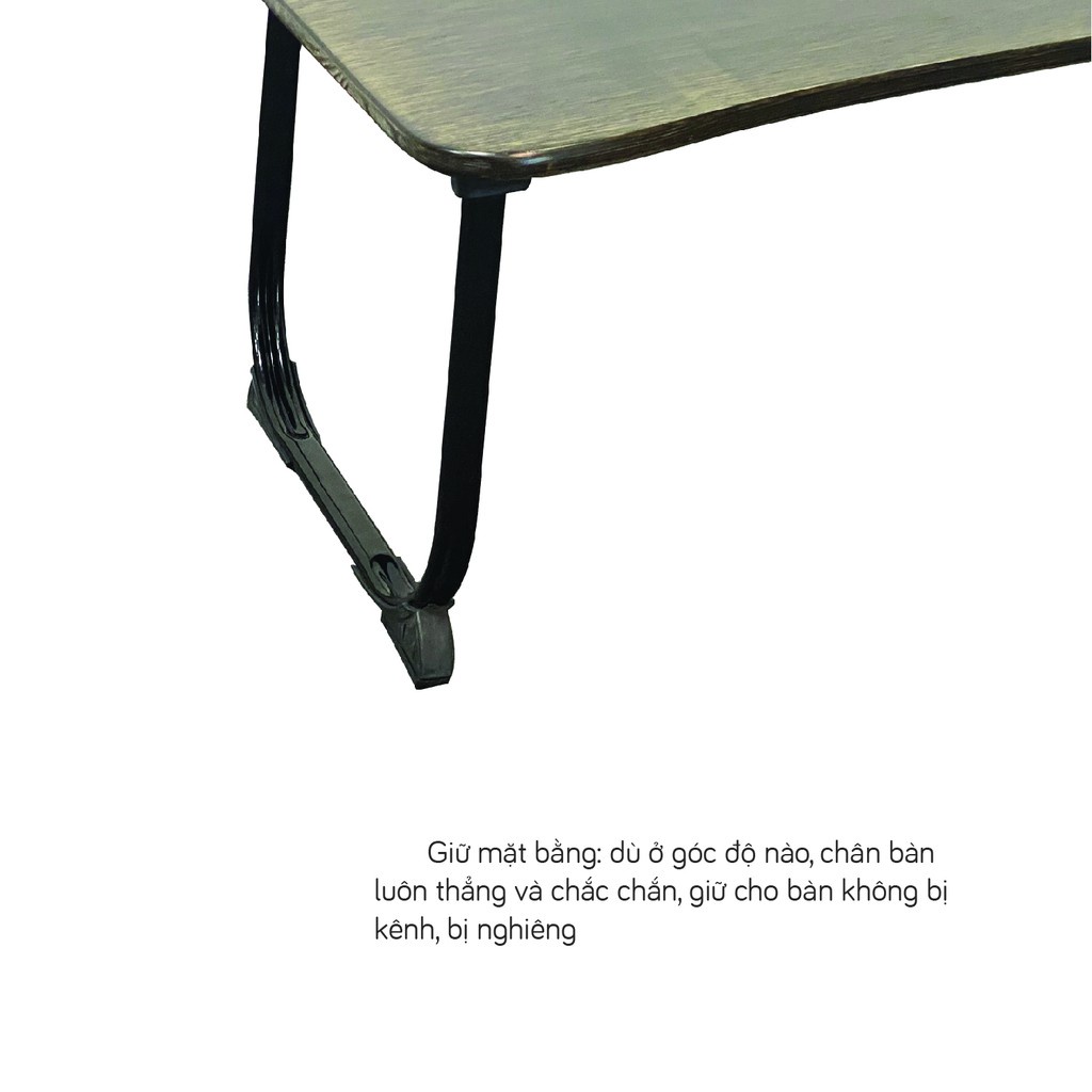 - Bàn gấp thông minh gọn nhẹ dễ di chuyển nên bạn có thể sử dụng ở nhiều địa điểm khác nhau: Trên giường, trên sofa, dưới sàn nhà...