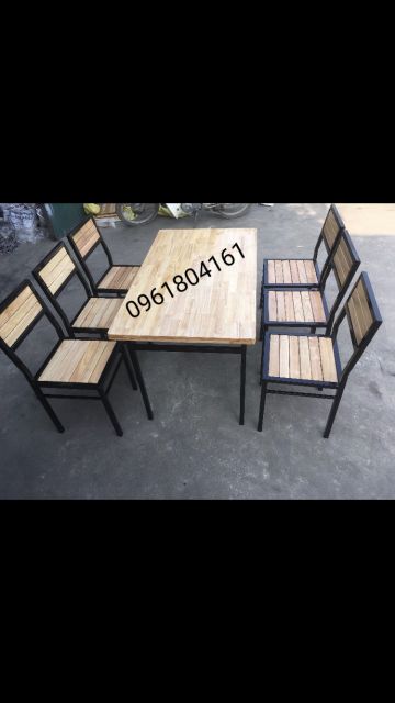 Bộ bàn ghế ăn nhà hàng khung sắt mặt gỗ cao su