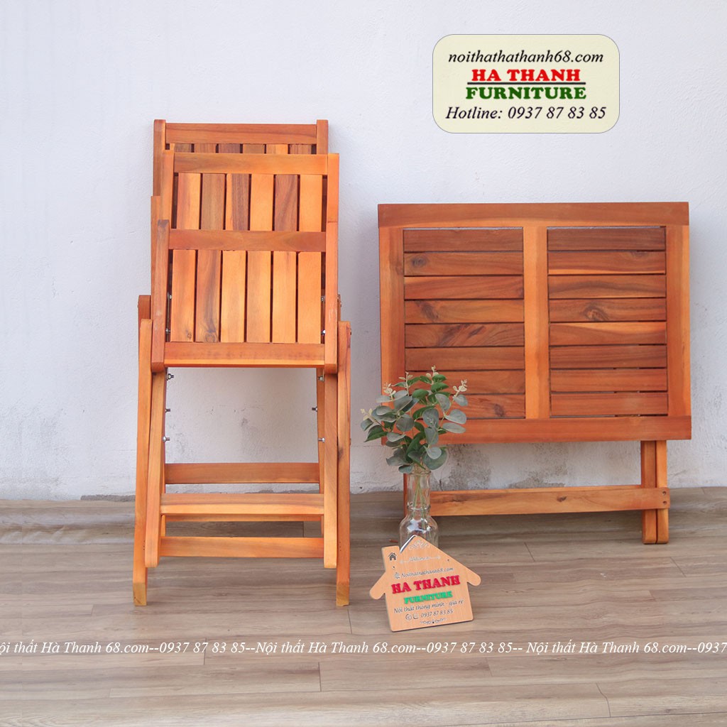 Bàn ghế ban công mini gấp gọn phù hợp diện tích ban công vừa và nhỏ.Các tiêu trí đặt ra cho 1 chiếc ghế cafe ngoài trời- bàn ghế ban công là thích ứng được với thời tiết, chống thấm tốt, độ bền cao và đảm bảo tính thẩm mỹ. Đừng lo Chúng tôi đã có giải pháp cho bạn! Nội thất Hà Thanh 68 xin giới thiệu bộ bàn ghếmini gỗ tràm xếp gọn là lựa chọn lý tưởng cho không gian ngoài trời.