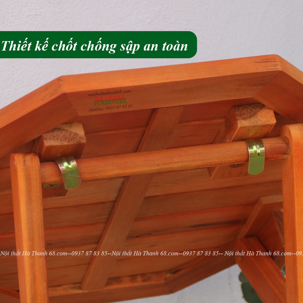 - Bàn ghế cafe xếp gọn mini được làm từ nguyên liệu gỗ tràm đã qua chọn lọc kỹ lưỡng có khả năng chống thấm và kháng mối mọt tốt,giúp sản phẩm có độ bền cao và thích ứng được với mọi điều kiện thời tiết ngoài trời.