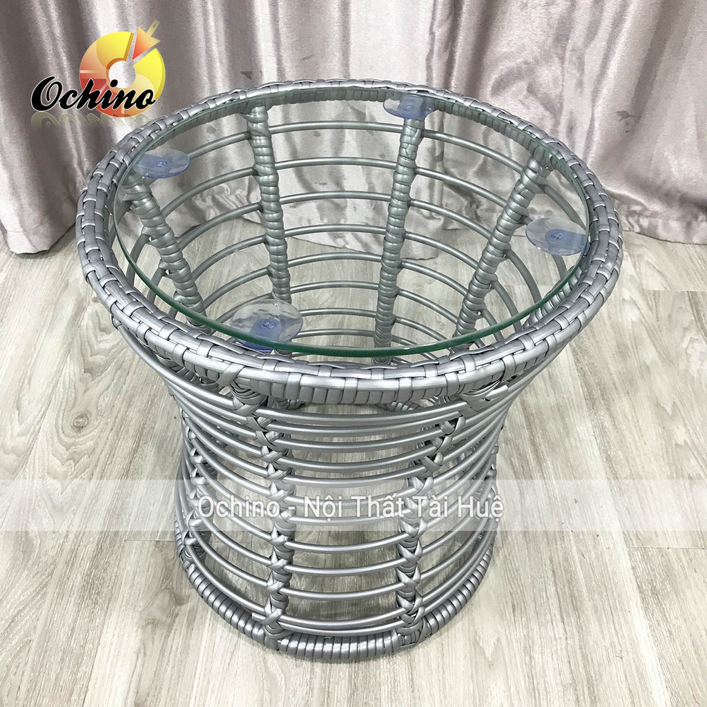 Bộ bàn ghế ban công ngoài trời gồm bàn cafe và 1 ghế mây nhựa khung kim loại trang trí Hàng Cao cấp (Có Sẵn)