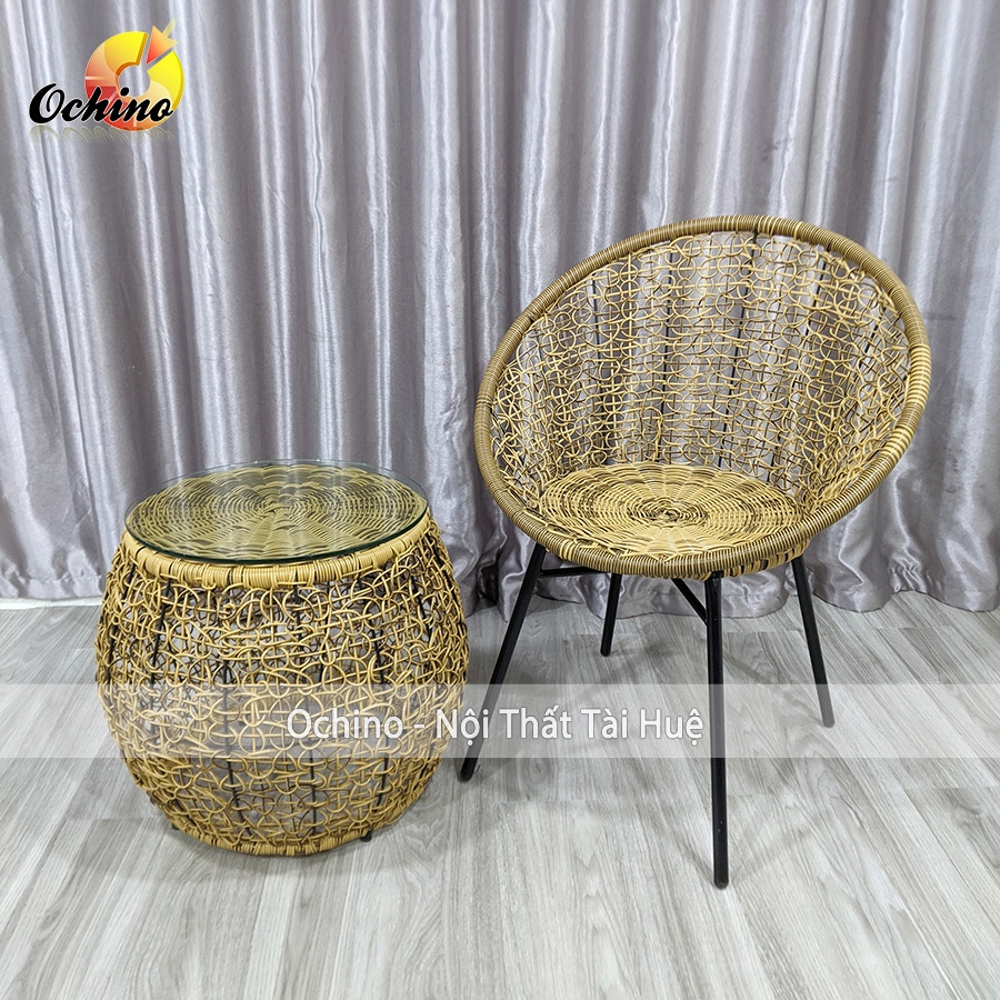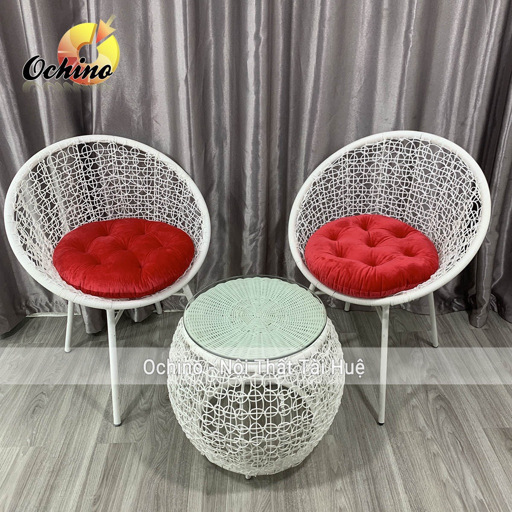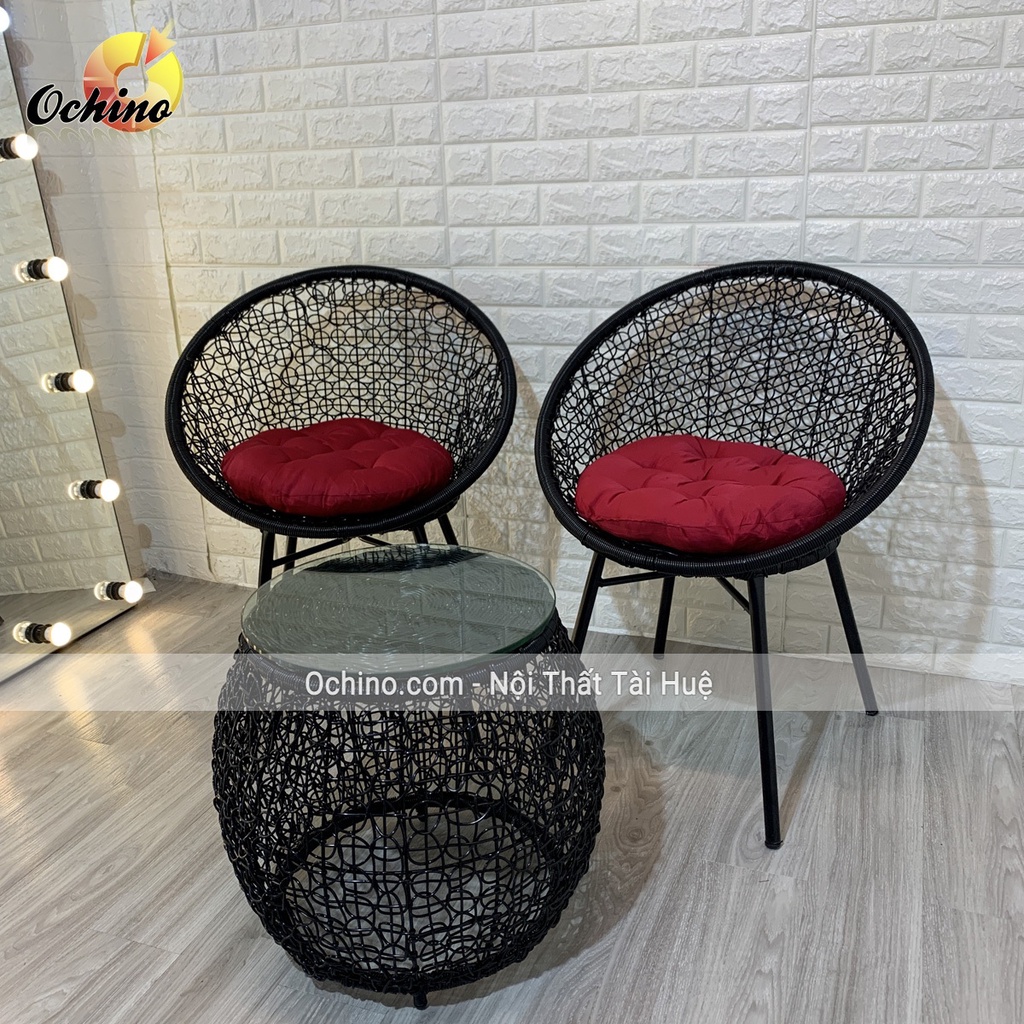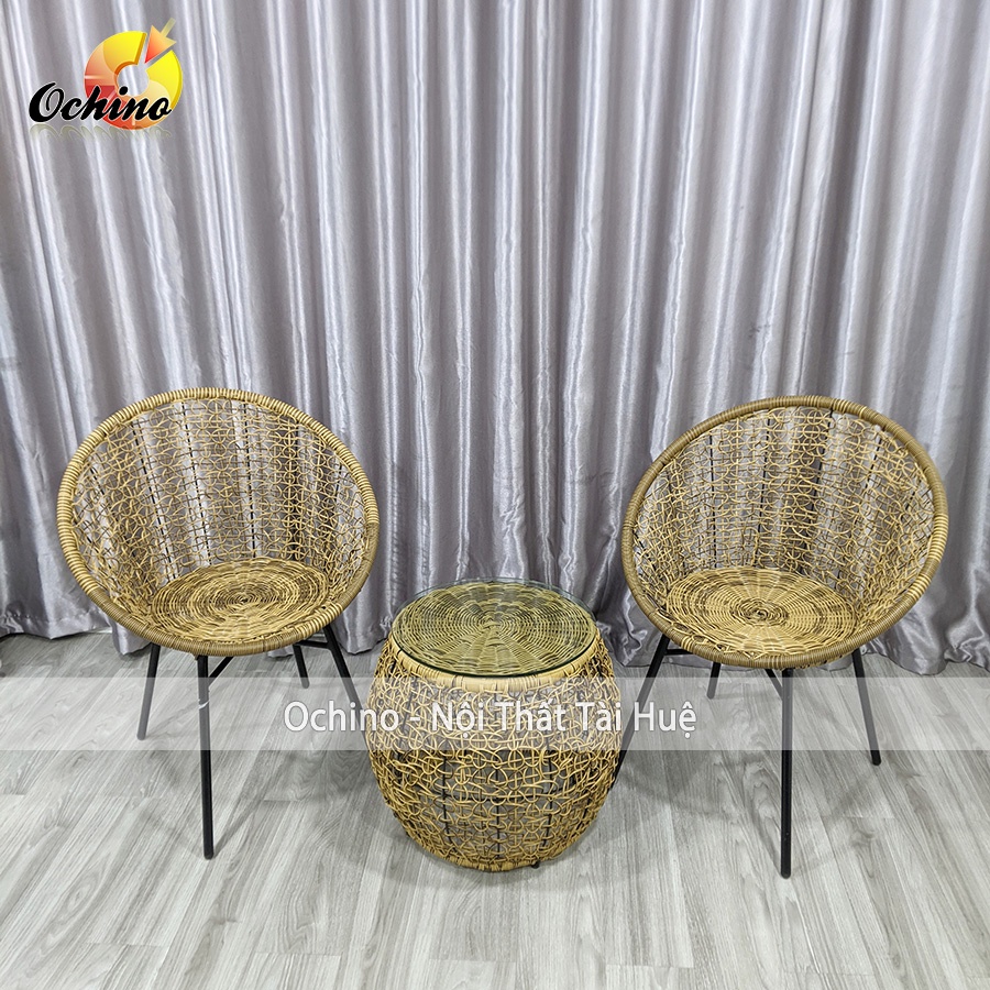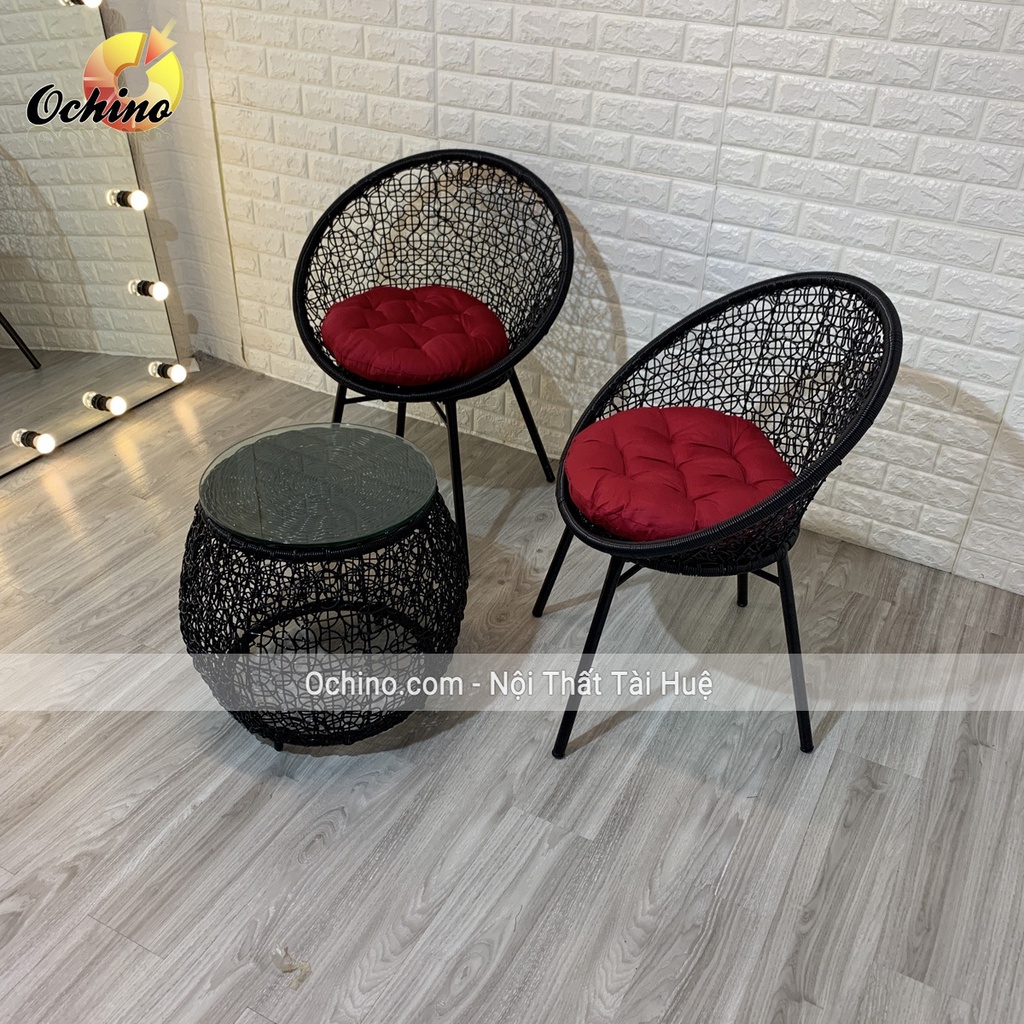 - Ghế ban công dây nhựa giả mây đan rối chuẩn.