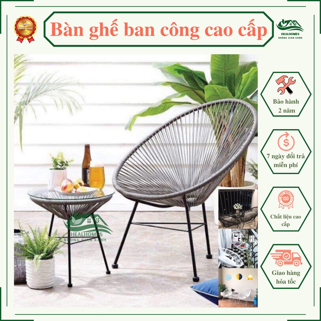 Giới thiệu Bàn ghế ban công ngoài trời khung kim loại ngồi uống trà cafe hoặc trang trí phòng khách phòng ngủ, Ghế mây / HealHomes
