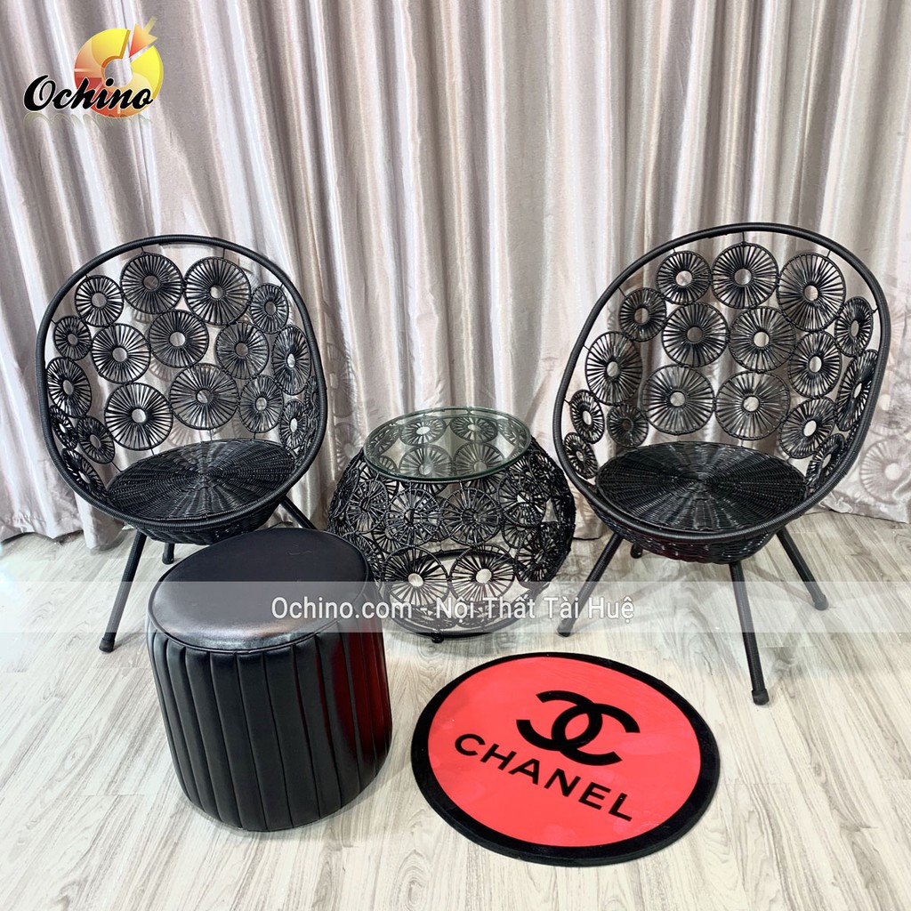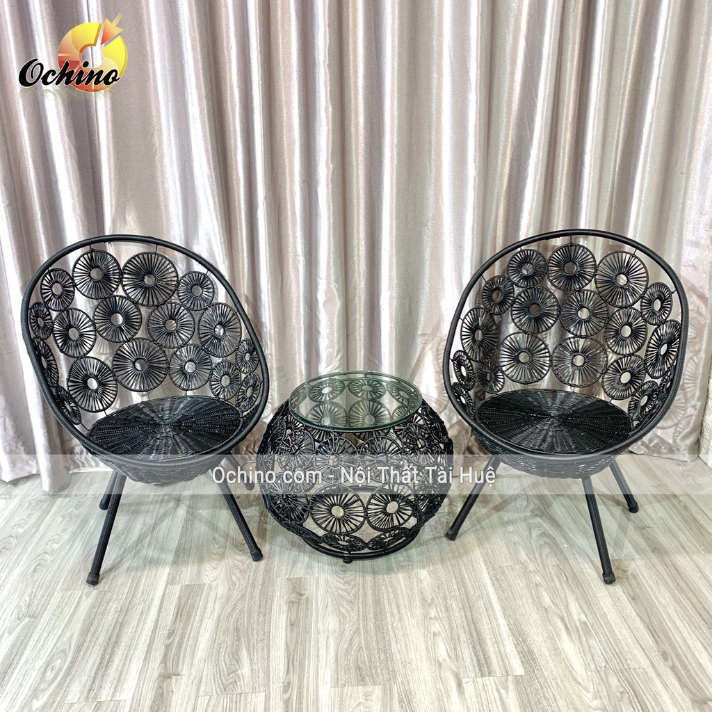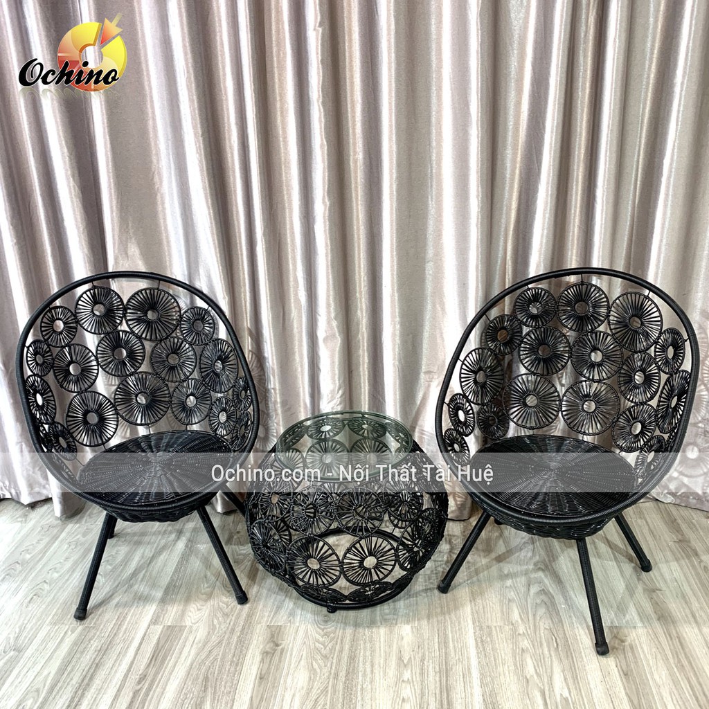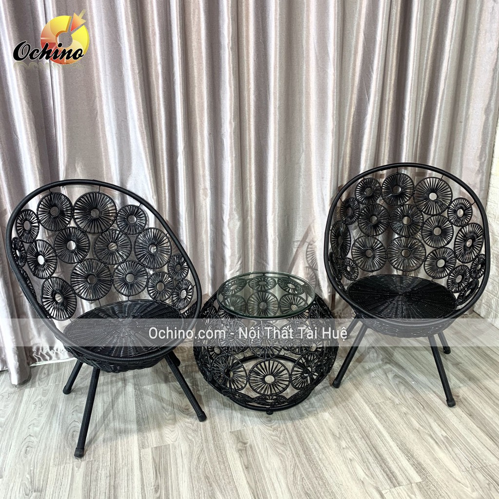 Nhà cửa & Đời sống > Nội thất > Ghế, ghế dài, ghế đẩu || Bộ bàn Ghế Ban công Nhựa Giả mây cao cấp mẫu hoa cách điệu loại to ( có Sẵn)Còn hàng