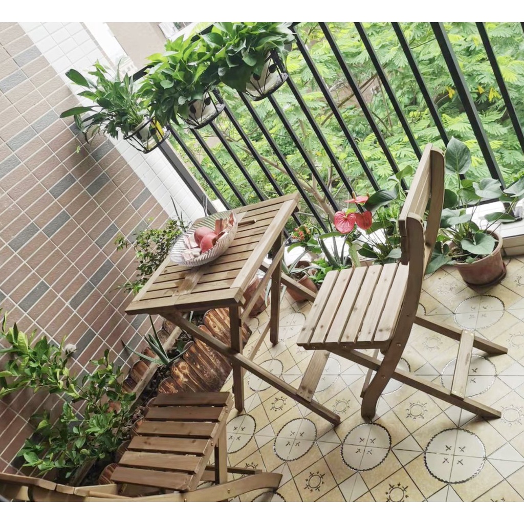 Giới thiệu Bộ bàn ghế Bistro gỗ tự nhiên chuyên làm bàn cafe ban công sân vườn - Bàn & 2 Ghế Ban Công Chung Cư Xuất Khẩu Hàn Quốc
