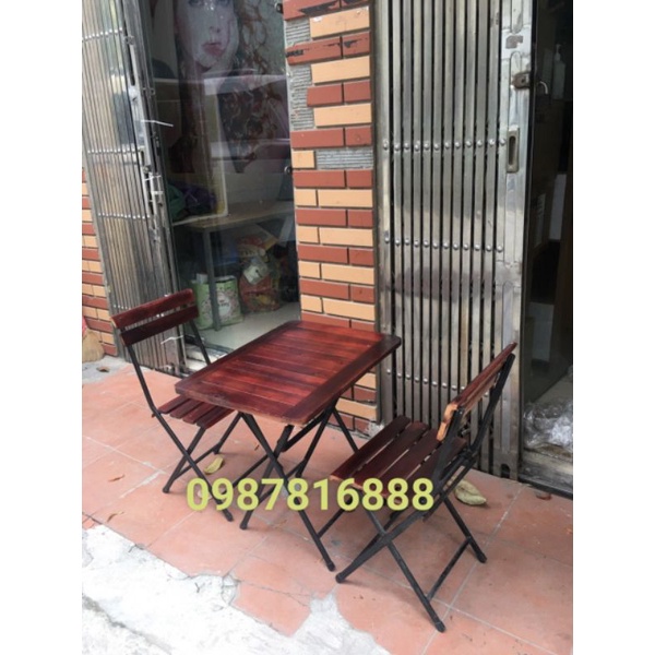 Bộ bàn Ghế gấp cà phê lan gỗ (1 bàn - 2 ghế)Ghế thiết kế kiểu dáng gấp gọn dễ sử dụng không chiếm diện tích