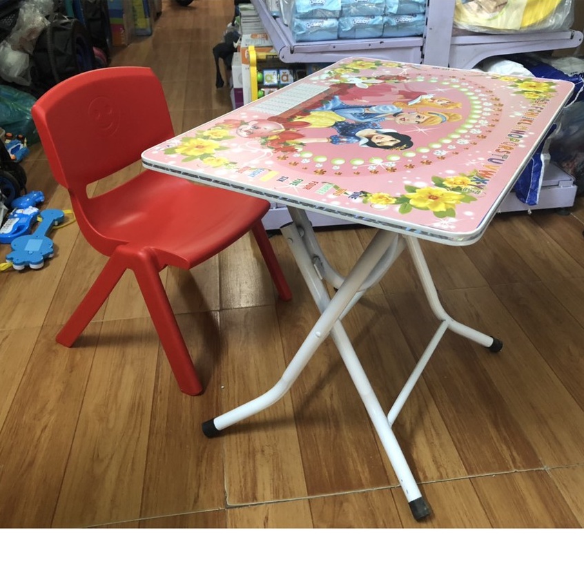 Bộ bàn ghế học tập cho bé mầm non siêu ngộ nghĩnh đáng yêu. Bàn có thể gấp gọn mang đi dễ dàng. Ghế nhựa đúc siêu bền khỏe chắc, bền. Người lớn 80kg ngồi ok.Hình ảnh nhiều hình. Shop giao hình ngẫu nhiên hoặc tùy khách chọn hình. Hình nào cũng đẹp.