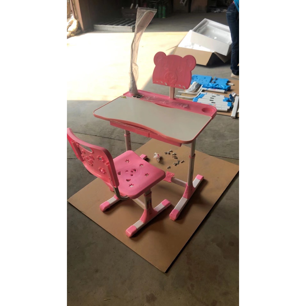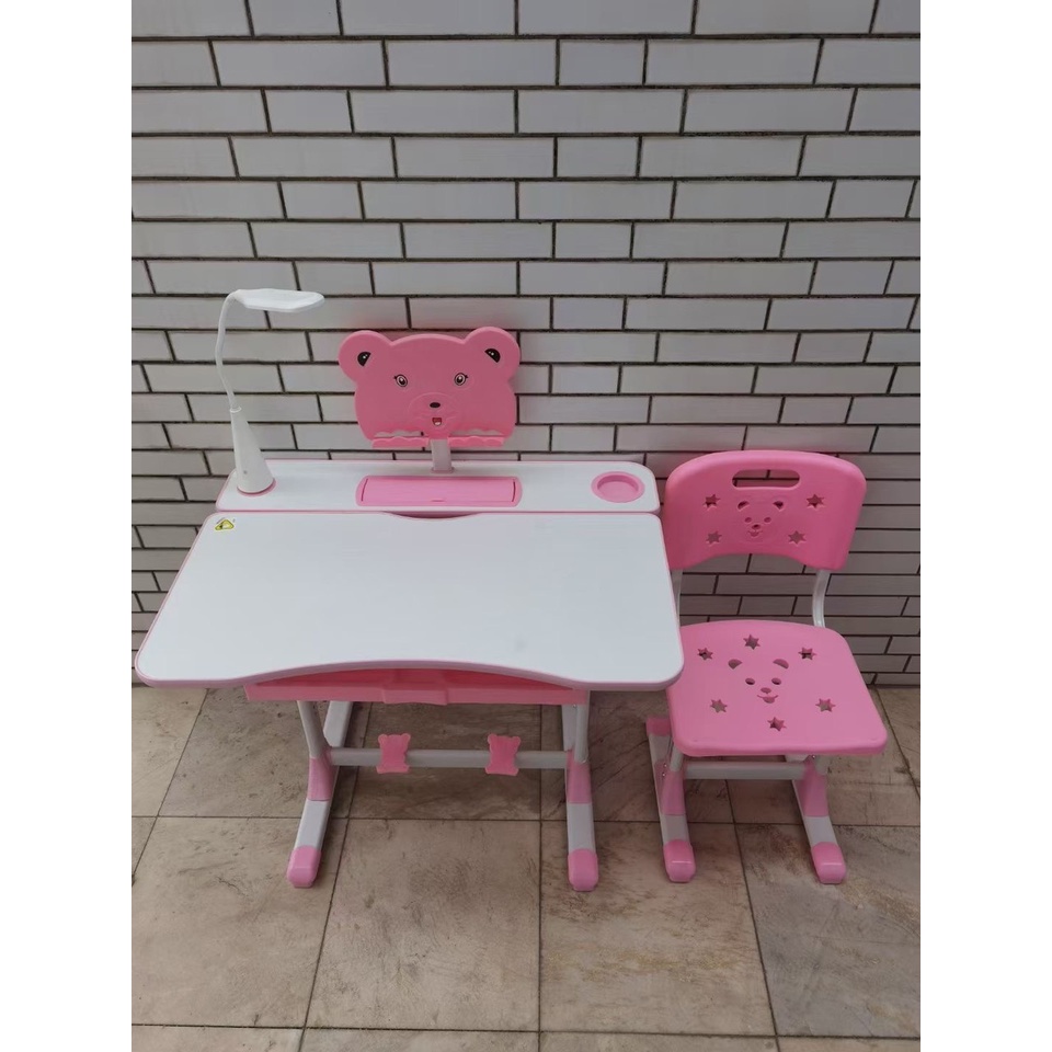 1 bộ gồm bàn ghế, đèn led, giá đỡ sách và phụ kiện lắp