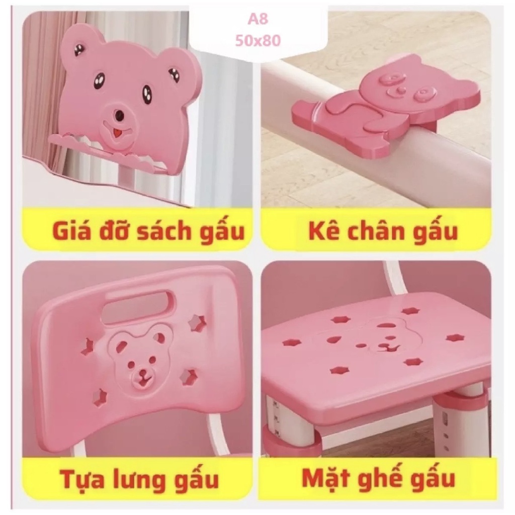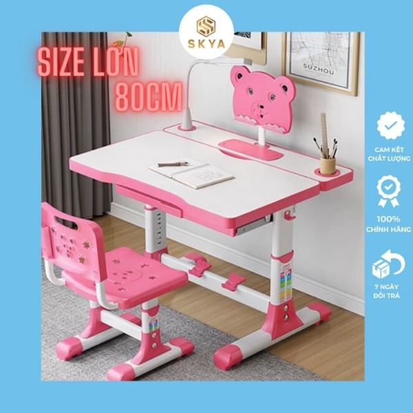 Bàn ghế học thông minh cho bé chống cận chống gù điều chỉnh độ cao 50x80 SKYA A82Đây là mẫu bàn ghế học cỡ nhỏ DUY NHẤT trên thị trường có cơ chế điều chỉnh độ cao bàn tiện lợi và có tích hợp giá kê chân cho bé, tạo điểm tựa thư giãn, vững chãi khi ngồi học .