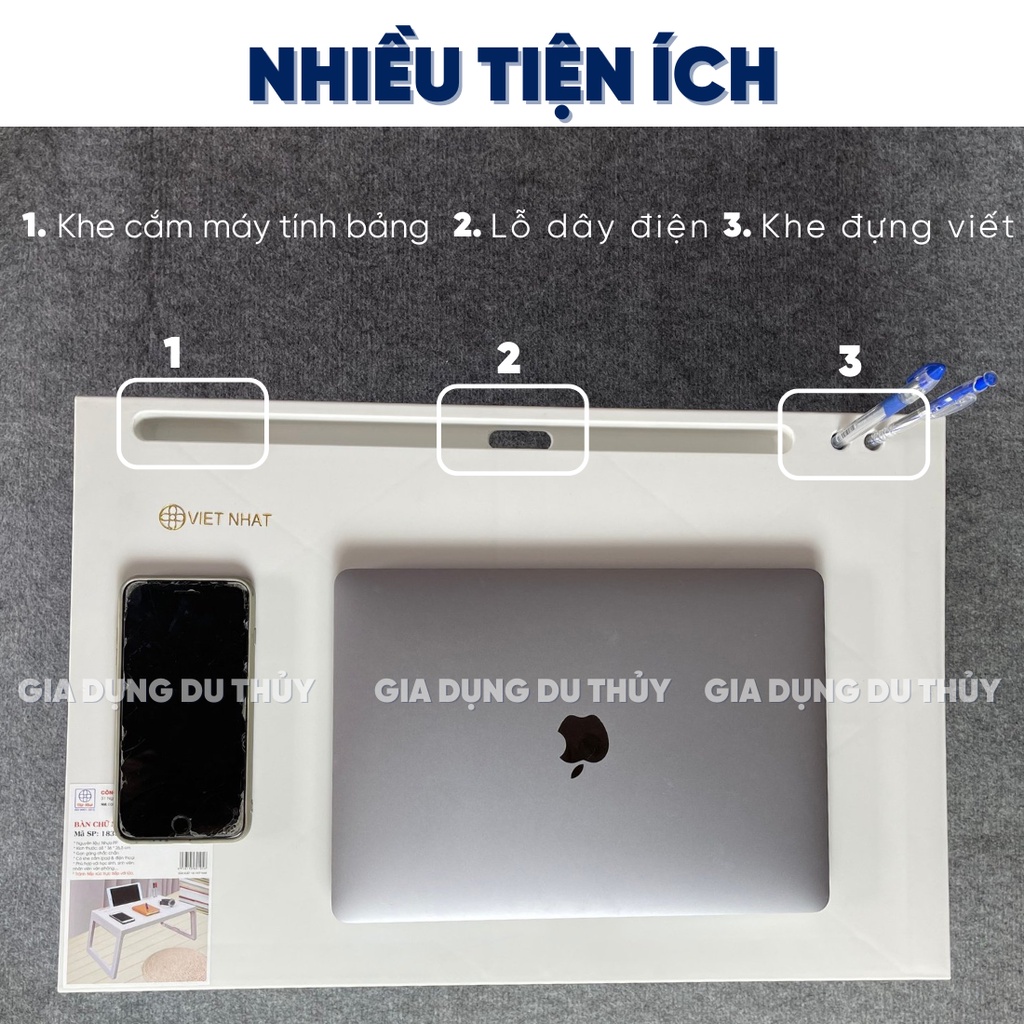 - Bàn gấp gọn có khe cắm Ipad rất phù hợp với những bạn học sinh, sinh viên, nhân viên văn phòng khi làm việc với quyển sổ và cái laptop trên giường hay bất kì góc nhỏ nào
