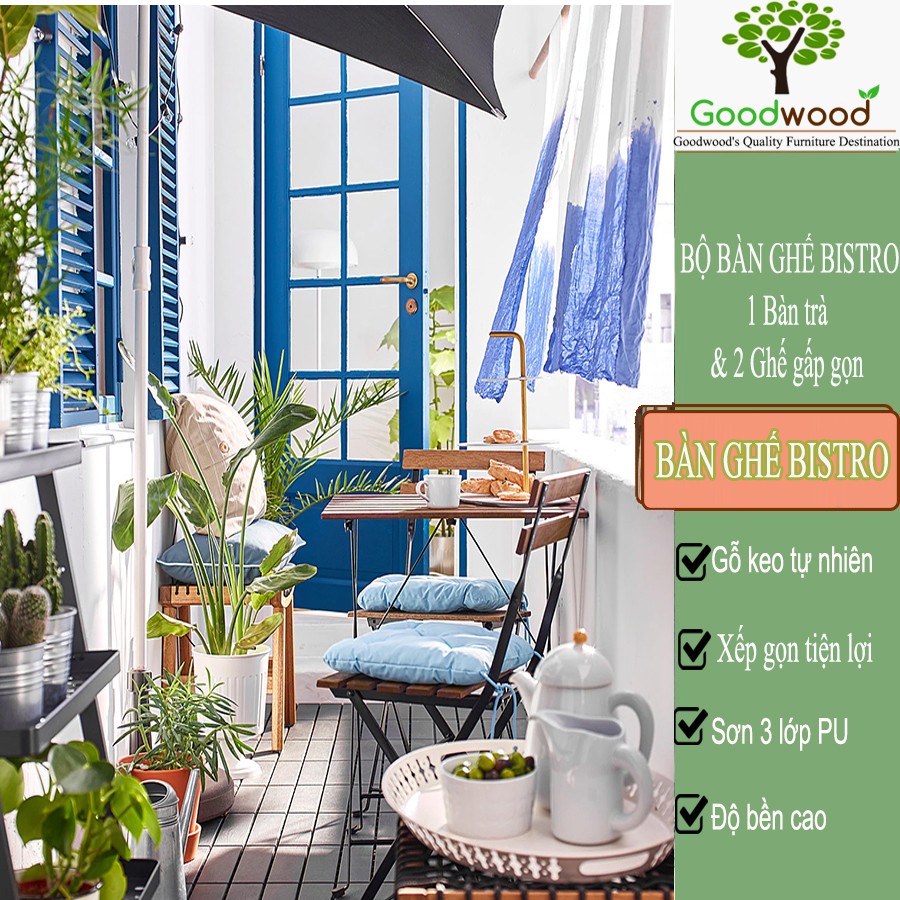 Nhà cửa & Đời sống > Nội thất > Bàn || Bộ Bàn Ghế Gỗ BISTRO Patio Mini Chuyên Dụng Phù Hợp Làm Bàn Ăn, Bàn Cà Phê - Gấp Gọn Dễ Dàng - Bộ Gồm 1 Bàn 2 GhếCòn hàng