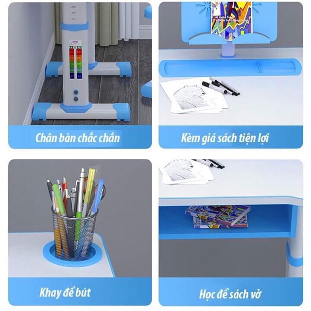 - Bàn và ghế đều có cơ chế tăng giảm độ cao