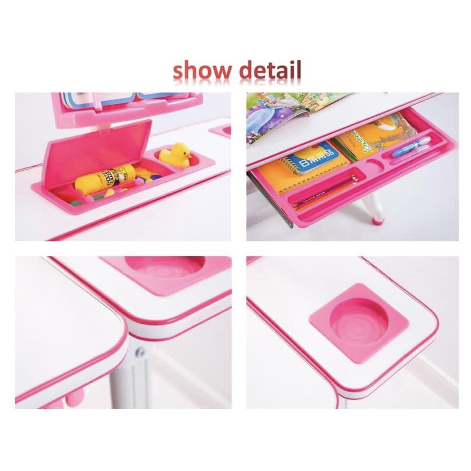 ✅Mặt bàn: Thiết kế phần đựng bút, tẩy,... tránh tình trạng rơi đồ dùng học tập khi điều chỉnh độ nghiêng mặt bàn..