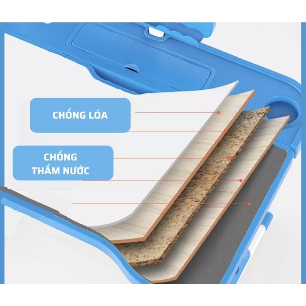 bố mẹ có thể hoàn toàn lau sạch vết bẩn khi con yêu thỏa sức sáng tạo, viết vẽ lên mặt bàn. Xua tan nỗi lo mặt bàn bám bẩn; dễ dàng lau chùi, vệ sinh và giúp con yêu tự tin vui học vì đã có bàn học thông minh SKYA B051