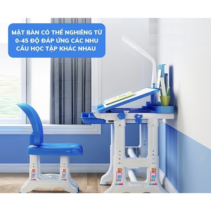 Bộ bàn ghế học sinh chống cận chống gù bàn học thông minh cho bé chỉnh được độ cao có giá đỡ sách và ngăn kéo SKYA B051